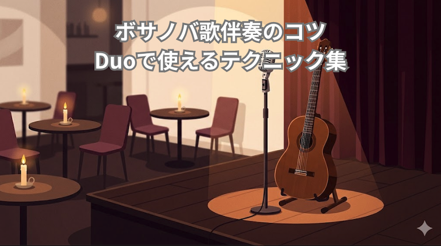 ジャズの定番曲(枯葉など)やジャズブルースを題材に、ジャズギターの演奏に必須のコードやフレーズ、スウィングのリズムを基礎から学びます。