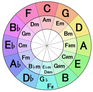 「五度圏(サークル・オブ・フィフス)」を逆時計回りに進む動きそのものです。