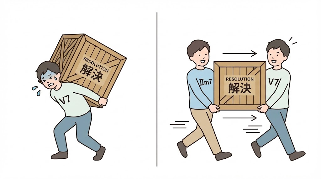 単発の仕事を「2人1組(チーム)」にすることで、助走がつき、流れが自然になります。 ジャズでは、V7を見たら条件反射でこの「分割」を行います。
